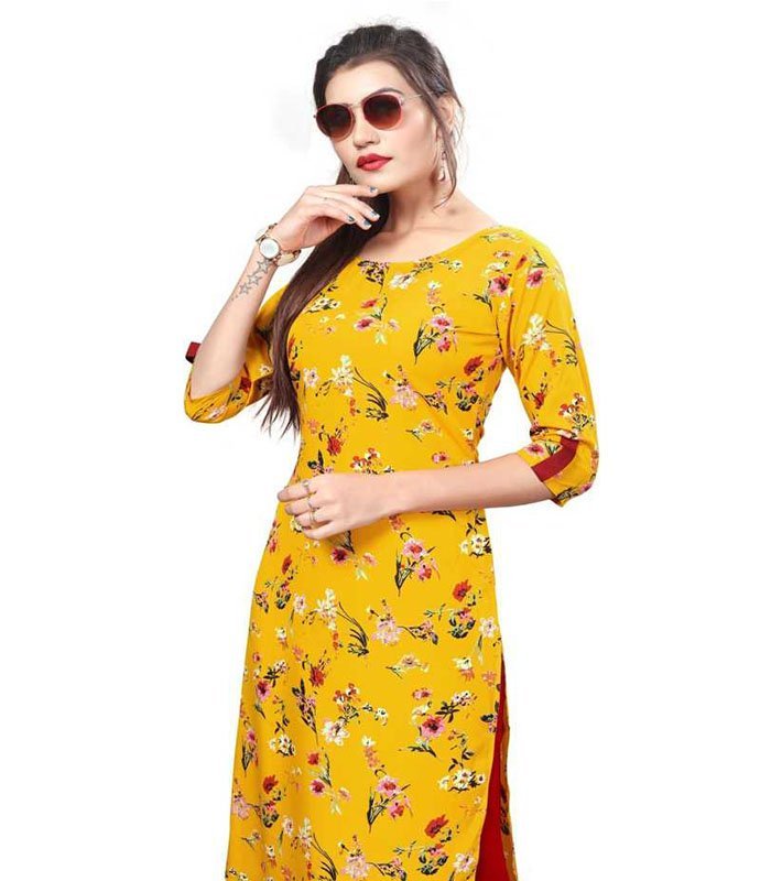 Dstudio Women Printed Crepe Straight Kurta (Yellow)